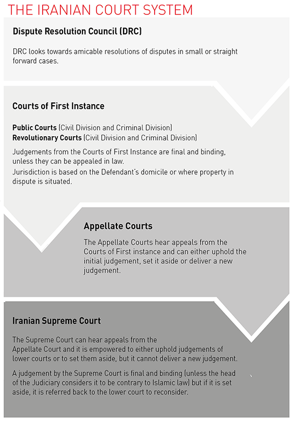The Iranian court system is divided into three tiers, all of which fall under the remit of the judiciary: